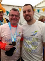 Waiting till the 2 mile marker I decided enough to this walking and increased to a very slow jog. The crowd were going mental and they must have spurred me on as I managed to keep running and keep running. I was greeted by my friend Nige with about 1.5 miles to go. Nige had also seen me at around the mile 13 mark, but this time he thrust a bottle of water into my hand, gave me a huge clap on the back and a massive cheer and that was it, I knew I was running to the end of the race.