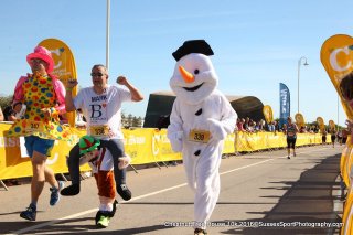 That is really all I have to say for myself right now. I will sign off with a few pictures of me running in a snowman costume at the recent Chestnut Tree House Littlehampton 10k. The two guys you can see next to me (also in fancy dress) are Mark Ward and Dave Chapman. Both very dedicated Chestnut fundraisers in their own right, and jolly nice chaps to boot. Both will be with me at the Brighton Marathons, and I am hoping to talk them into one or two of the others.
