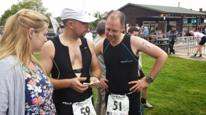 I was in pain. A lot of pain. Limping around I was seriously concerned I had done some lasting damage. Quickly comparing times with Bushy what I already knew was confirmed. He had finished around 4 minutes faster than me. His superior running had won through and the tutu would be mine. I really didn’t mind about that. He is a great mate, it had been a pleasure to race some of the bike leg against him and it was always a bit of a longshot for me to beat him. I ran a 55 minute 10k which is only 3 minutes slower than my PB and he still beat me. Well done Bushy. It will be a pleasure to race with you at the Ironman in September.