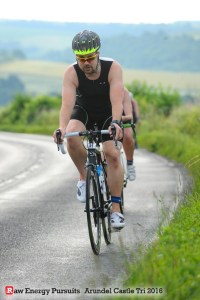 40km bike – 25 miles in old money, the bike course is two laps consisting of one long climb, a fast downhill and then a quick rolling section of the A27 before you start the second lap